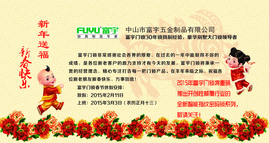 富宇門鎖恭祝新老客戶新春快樂(附假期時間安排)
