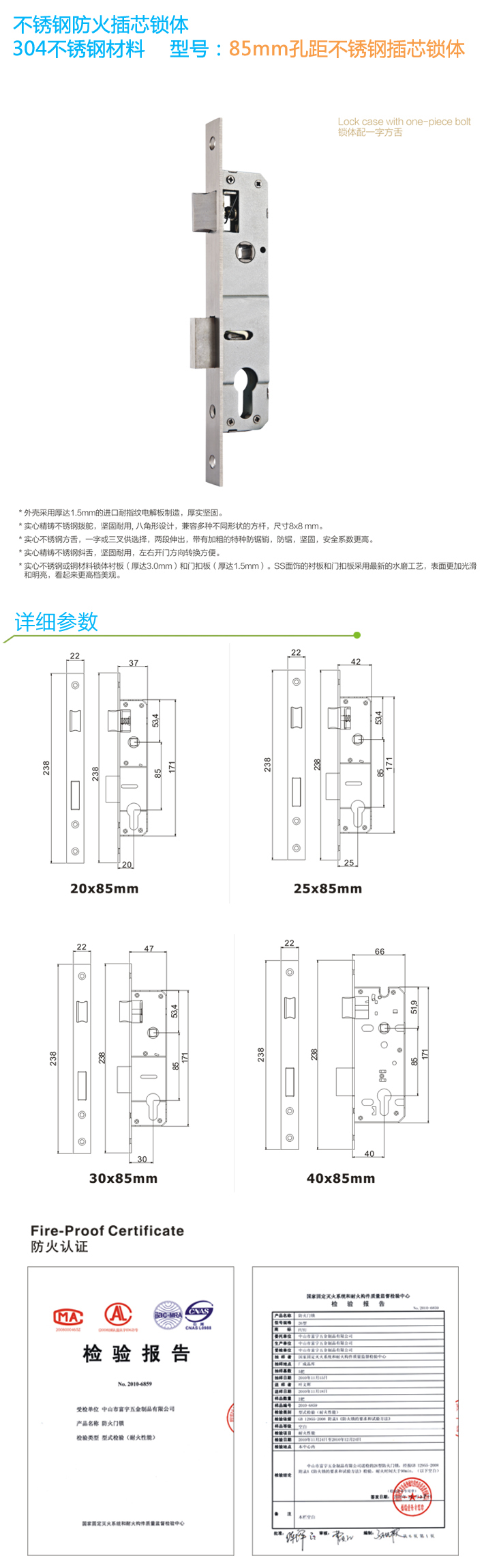 * 表示必填采購:20-40*85孔距不銹鋼插芯鎖體