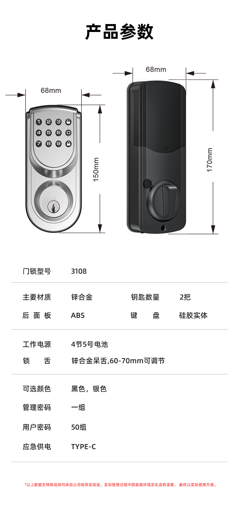 *鎖舌:鋅合金呆舌,60-70mm可調(diào)節(jié)