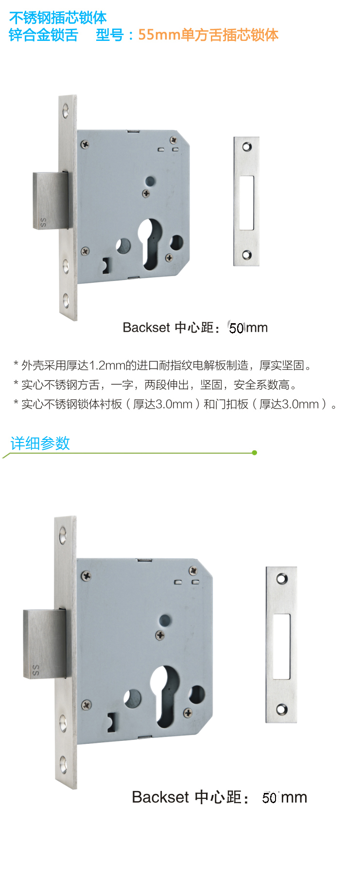 * 表示必填采購:50mm不銹鋼單方舌插芯鎖體