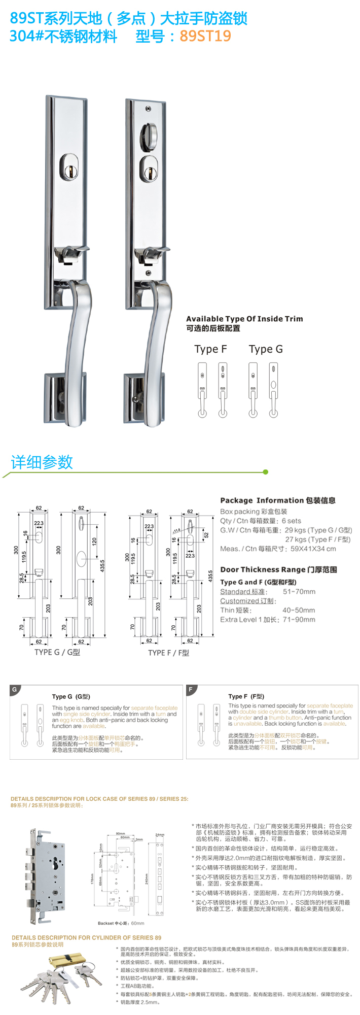 - 不銹鋼防盜大拉手鎖 89ST03