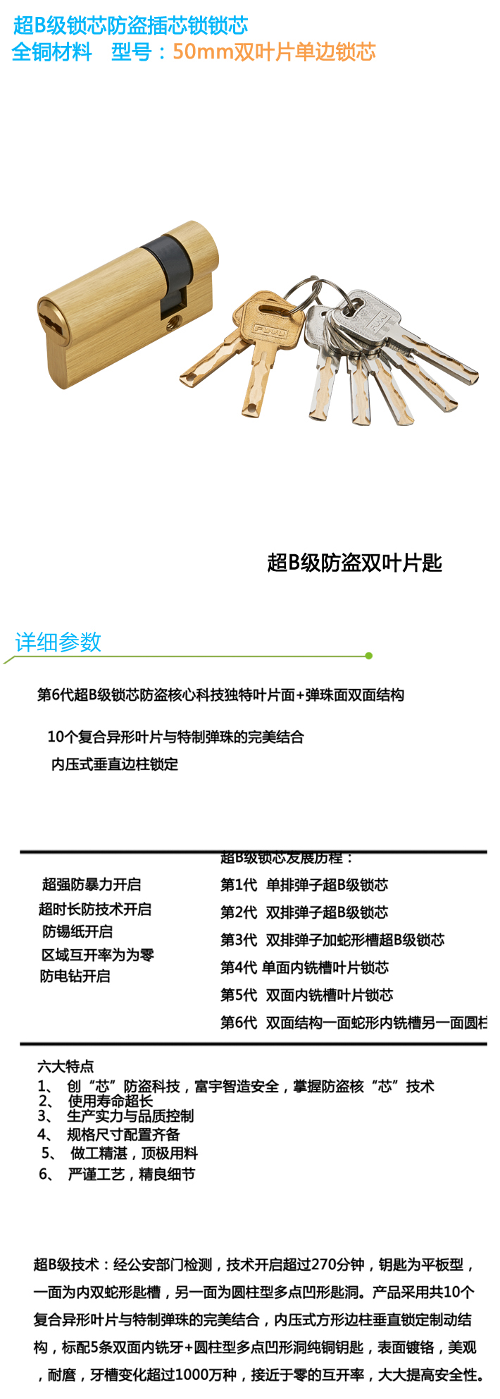 * 表示必填采購:C級防盜 雙葉片匙單邊鎖芯