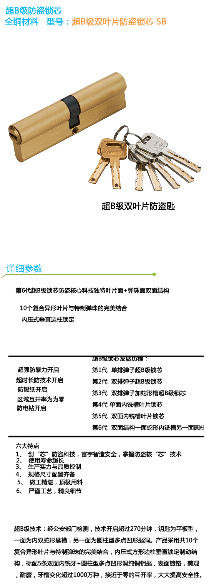 C級鎖芯 雙葉片匙雙開鎖芯 SG
