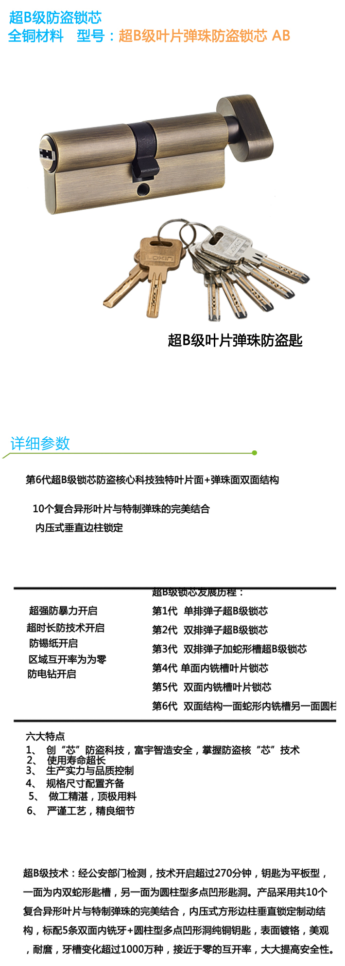 C級鎖芯 葉片彈珠匙單開鎖芯 AB