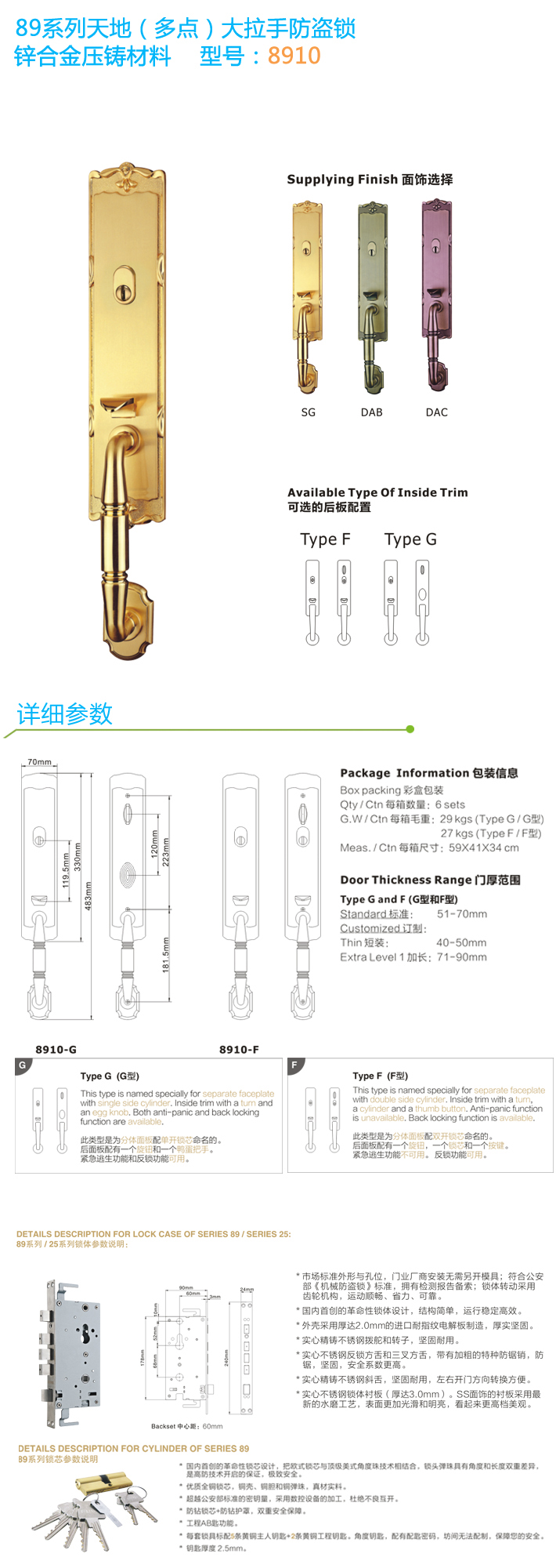 * 適用于各種安防盜門、金屬門和木門