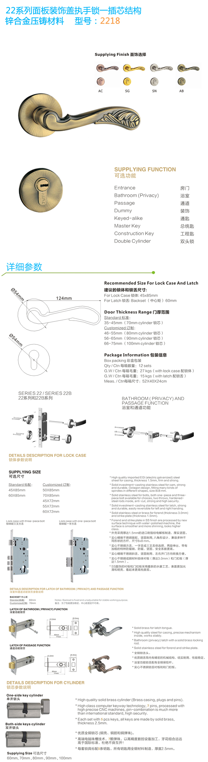 * 表示必填采購:分體裝飾蓋插芯門鎖 2218
