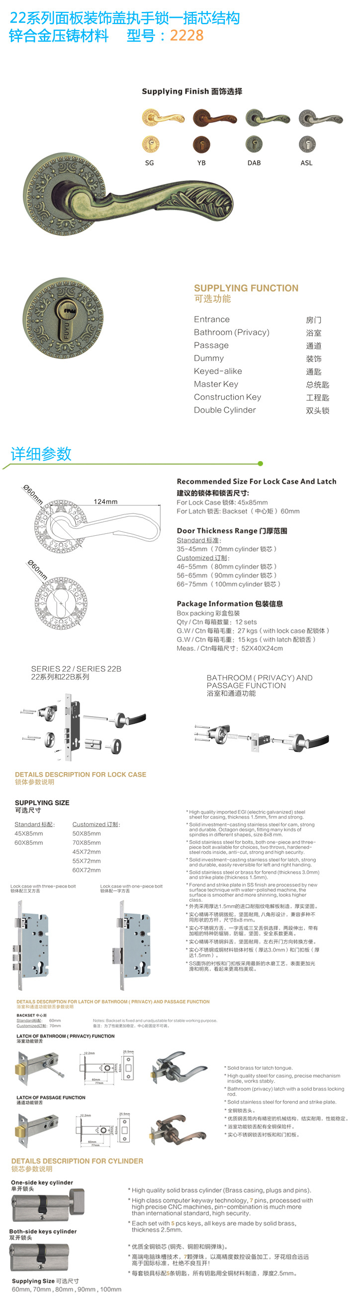 * 表示必填采購:分體裝飾蓋插芯門鎖 2228