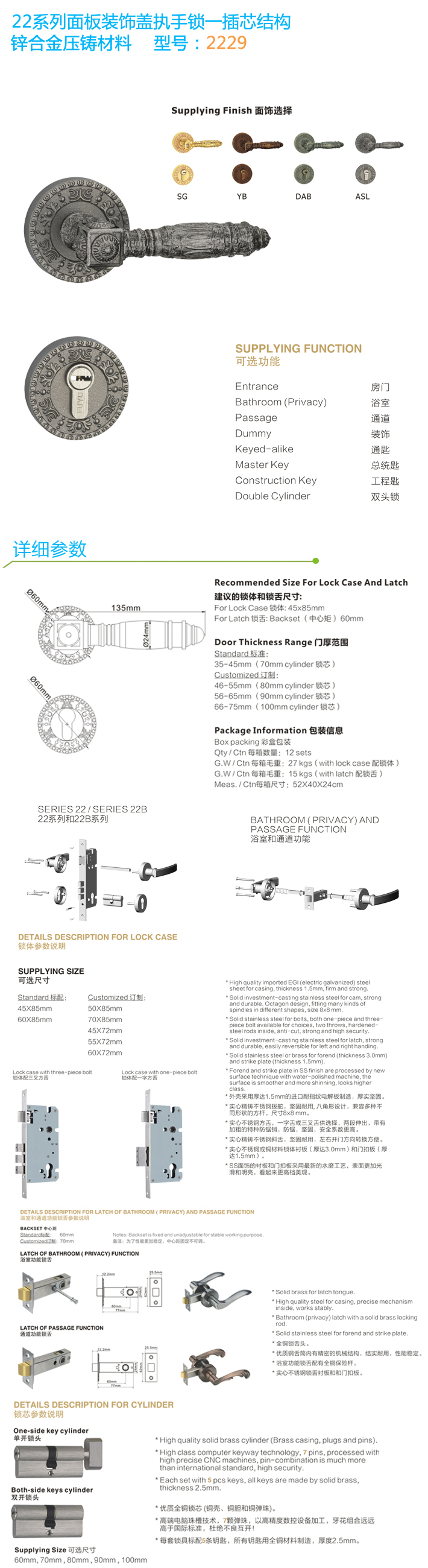 * 表示必填采購:分體裝飾蓋插芯門鎖 2229