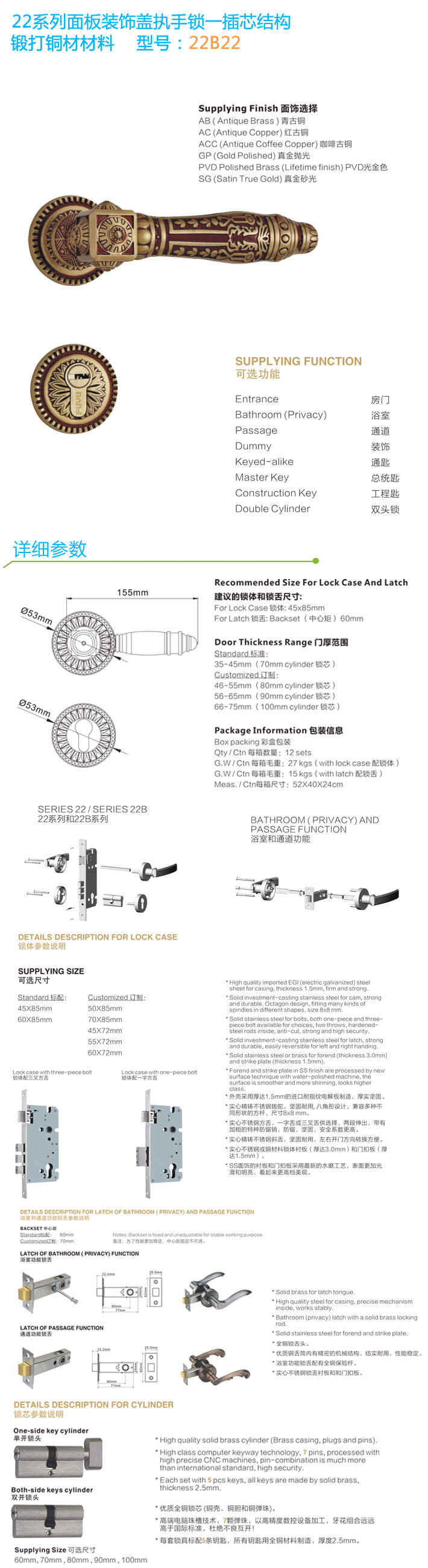 * 表示必填采購:分體裝飾蓋插芯銅鎖 22B22