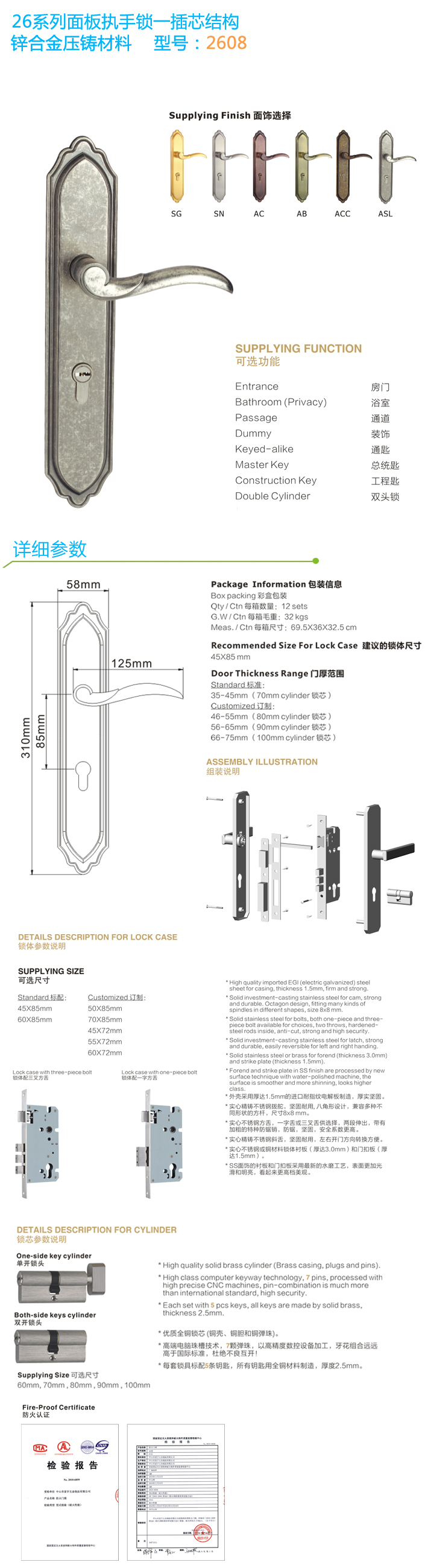 * 表示必填采購:古典歐式面板執(zhí)手鎖 2608