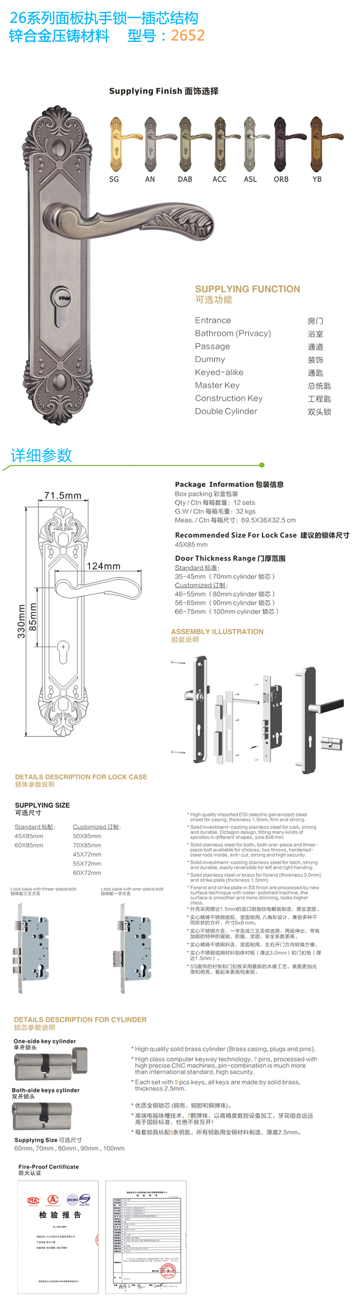 * 表示必填采購:古典歐式面板執手鎖 2652