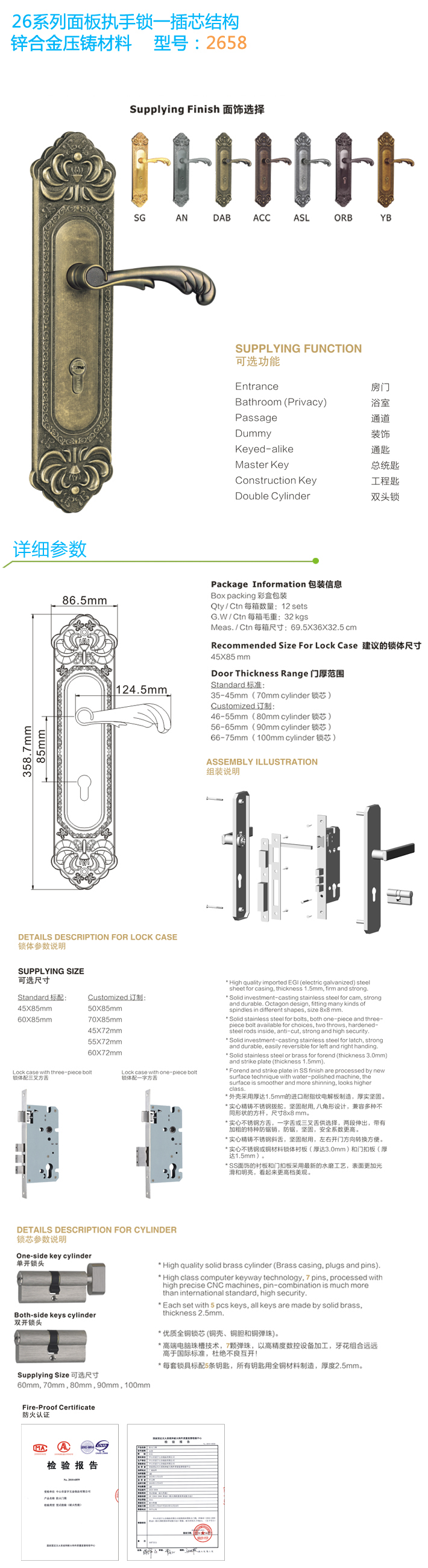* 表示必填采購:古典歐式面板執手鎖 2658