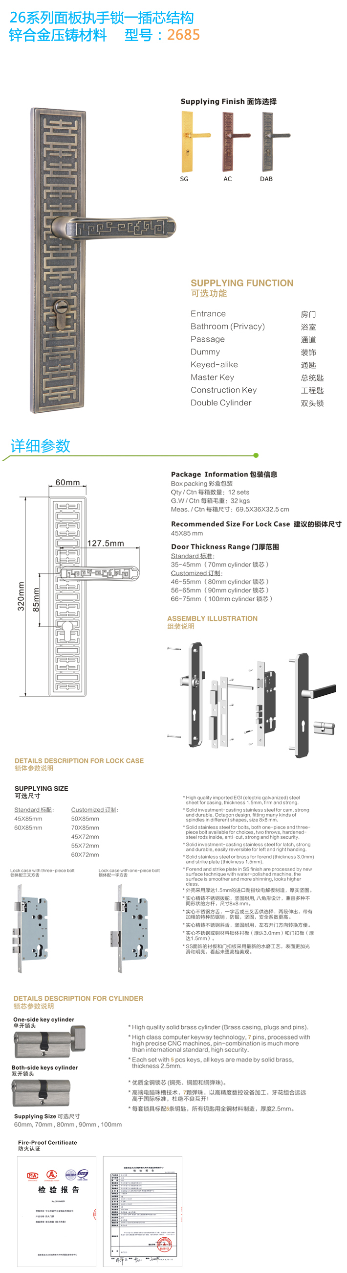 * 表示必填采購:古典歐式面板執手鎖 2685
