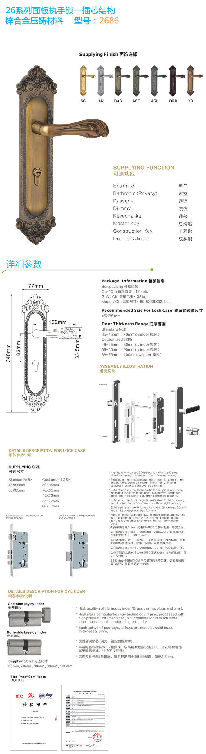 * 表示必填采購:古典歐式面板執手鎖 2686