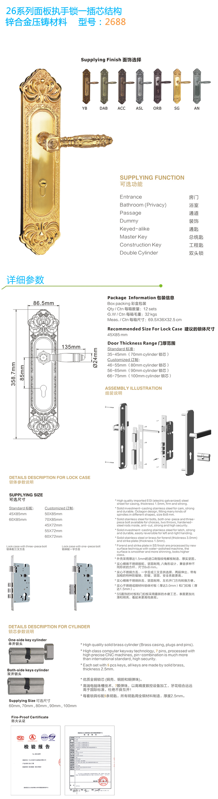 * 表示必填采購:古典歐式面板執手鎖 2688