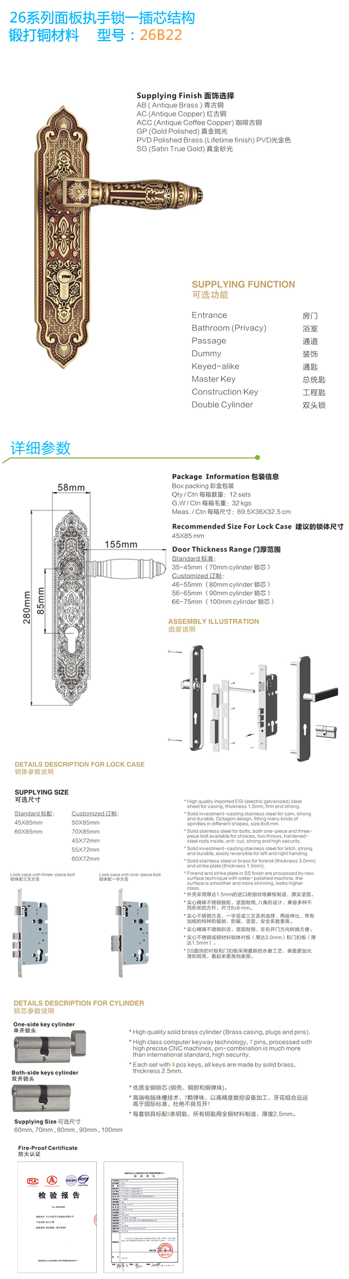 * 表示必填采購(gòu):古典歐式面板執(zhí)手銅鎖 26B22