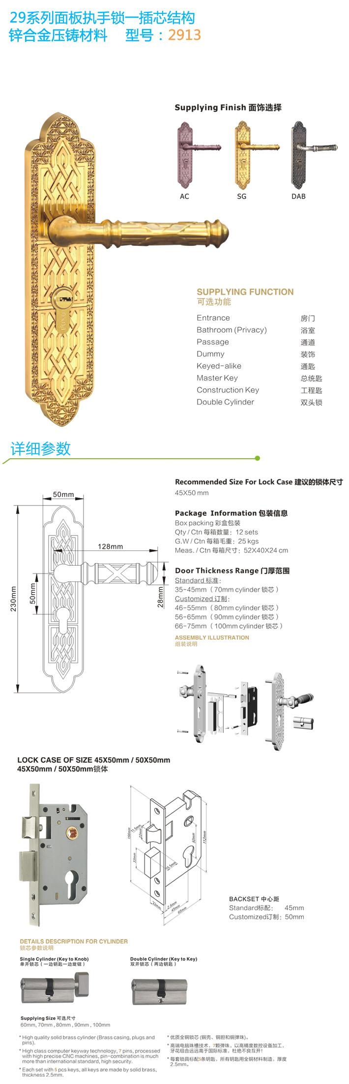 * 表示必填采購:古典小面板執(zhí)手鎖 2913