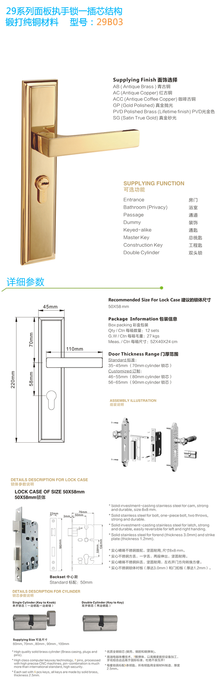 * 優(yōu)質(zhì)全銅鎖芯,標(biāo)配5條全銅鑰匙
