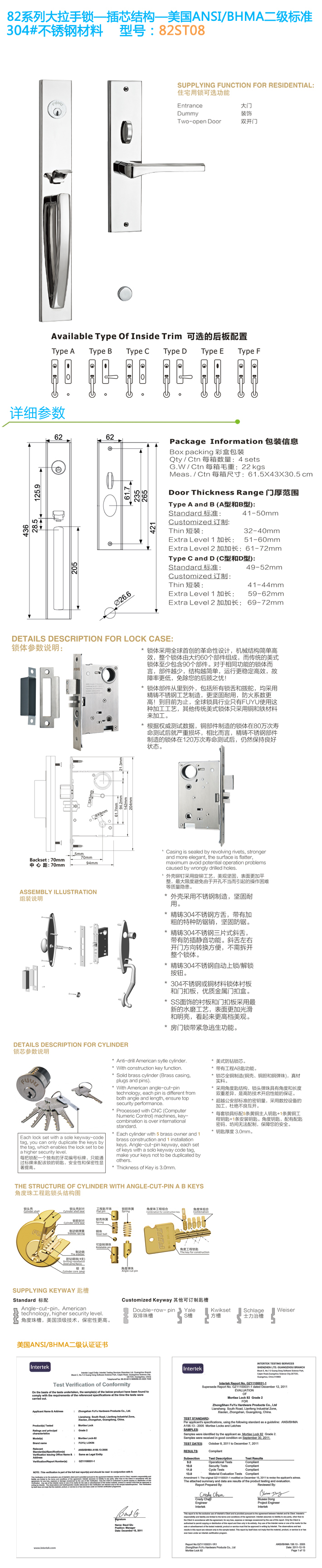 * 表示必填采購:美標304不銹鋼大拉手鎖 82ST08