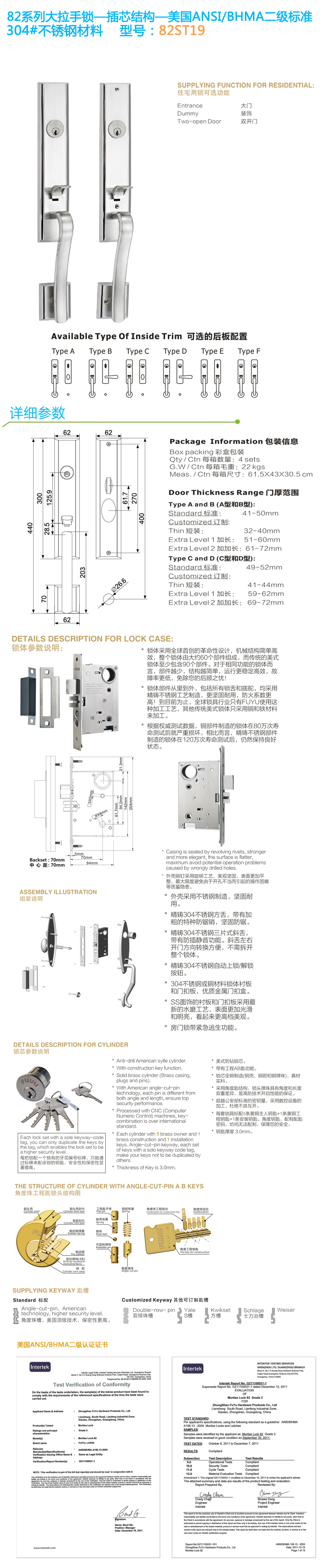 * 鎖體采用精鑄不銹鋼斜舌、防鋸方舌、轉子和拔舵