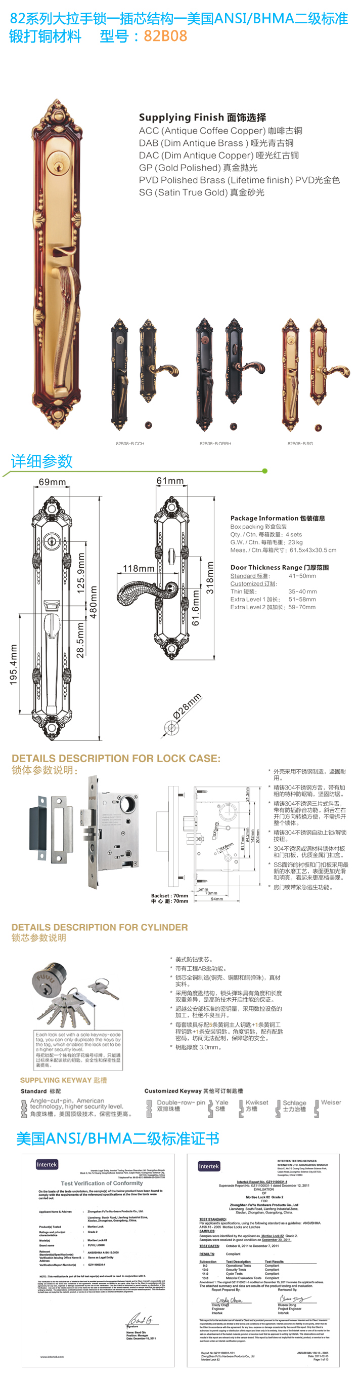 * 通過美國ANSI/BHMA GRADE二級認(rèn)證