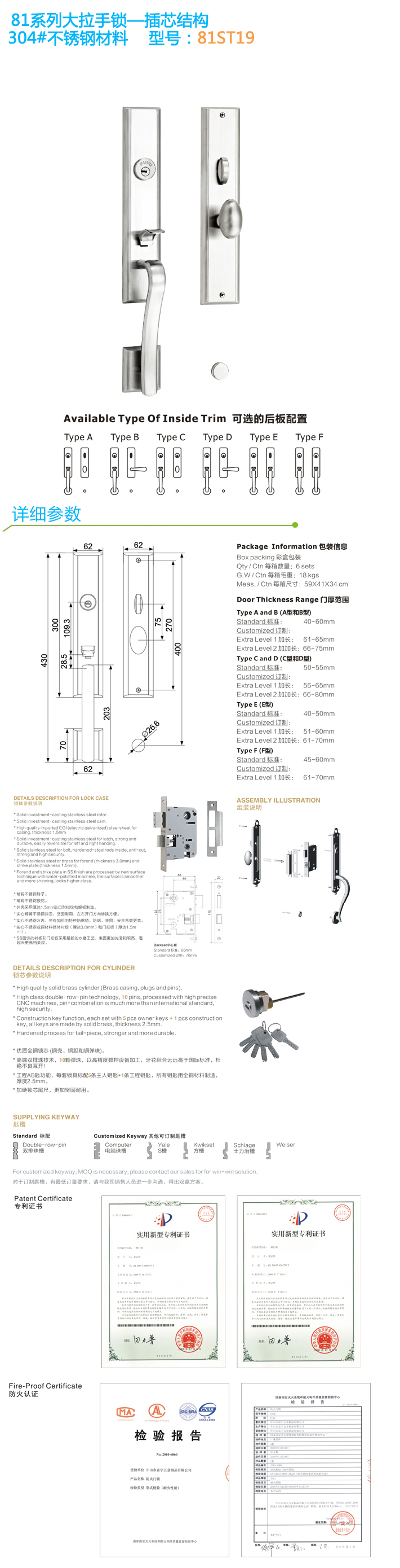 * 表示必填采購:歐標304不銹鋼大把手鎖 81ST19