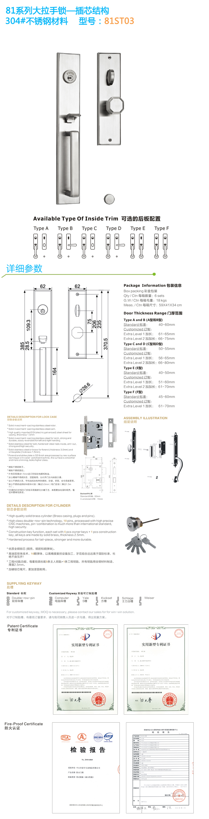 * 表示必填采購:歐標(biāo)不銹鋼大拉手鎖 81ST03