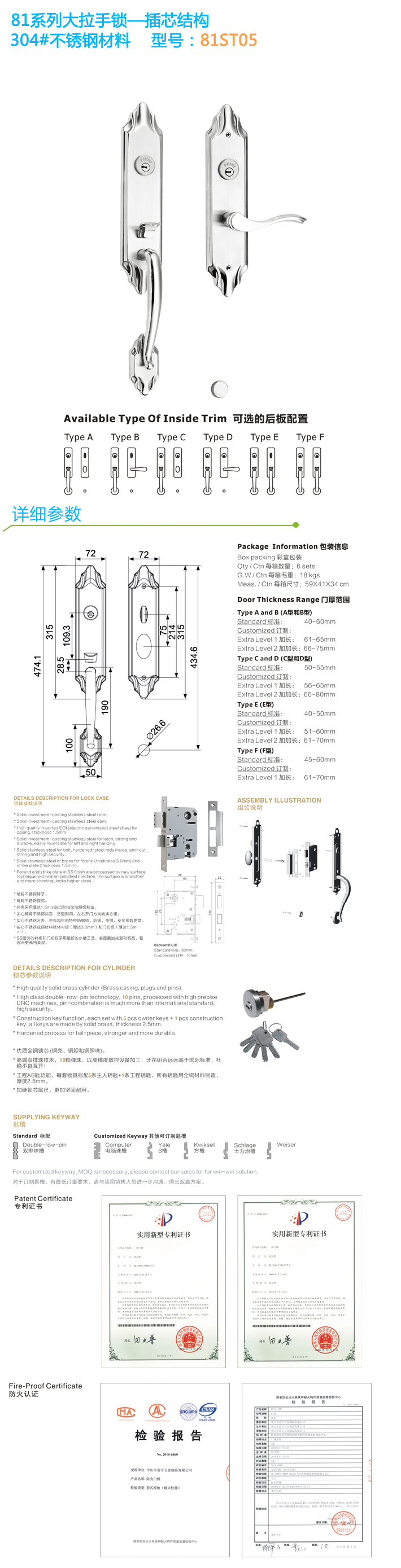 * 表示必填采購:歐標不銹鋼大拉手鎖 81ST05