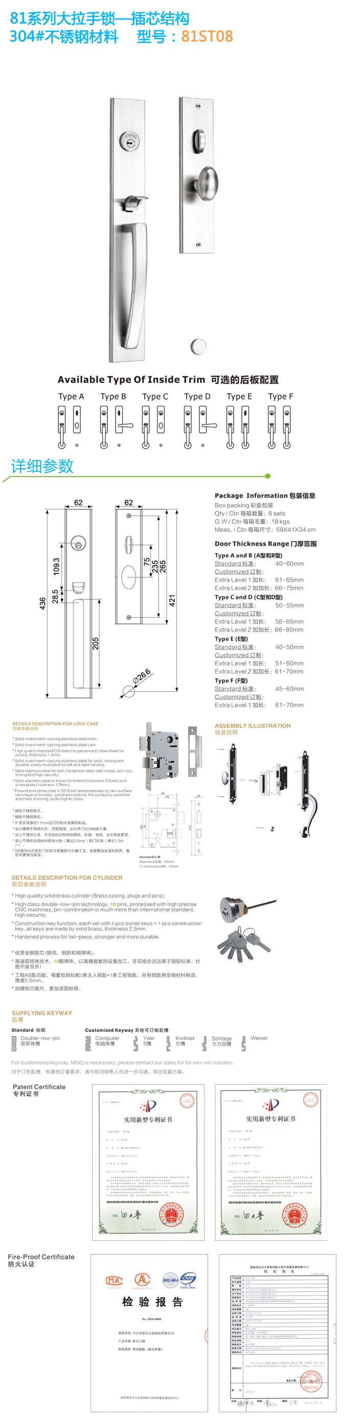 - 歐標(biāo)不銹鋼大拉手鎖 81ST02