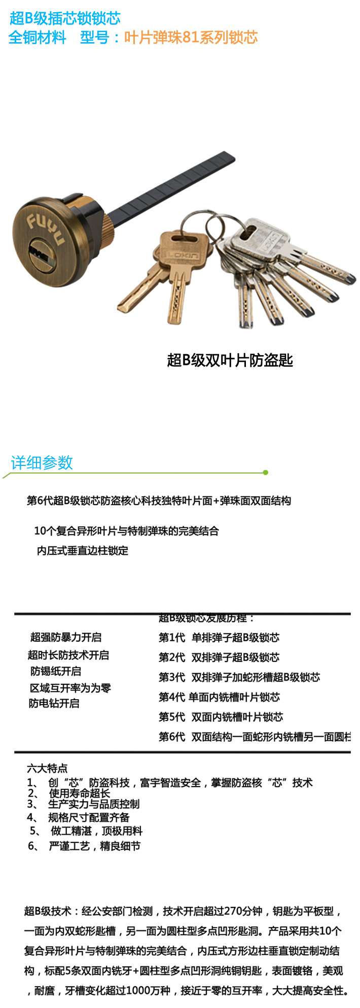 歐標插芯鎖芯 81系列葉片彈珠匙 AB