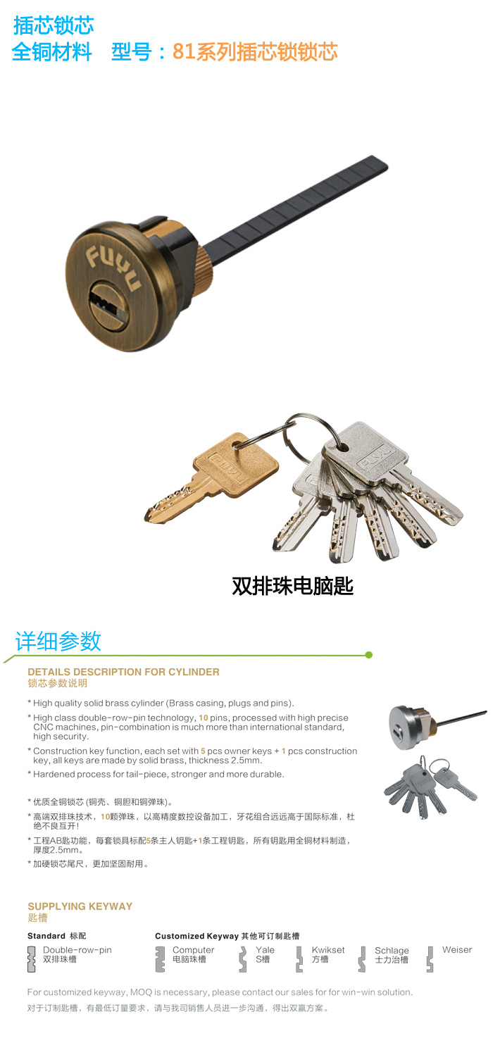 歐標插芯鎖芯 雙排珠匙81系列 AB