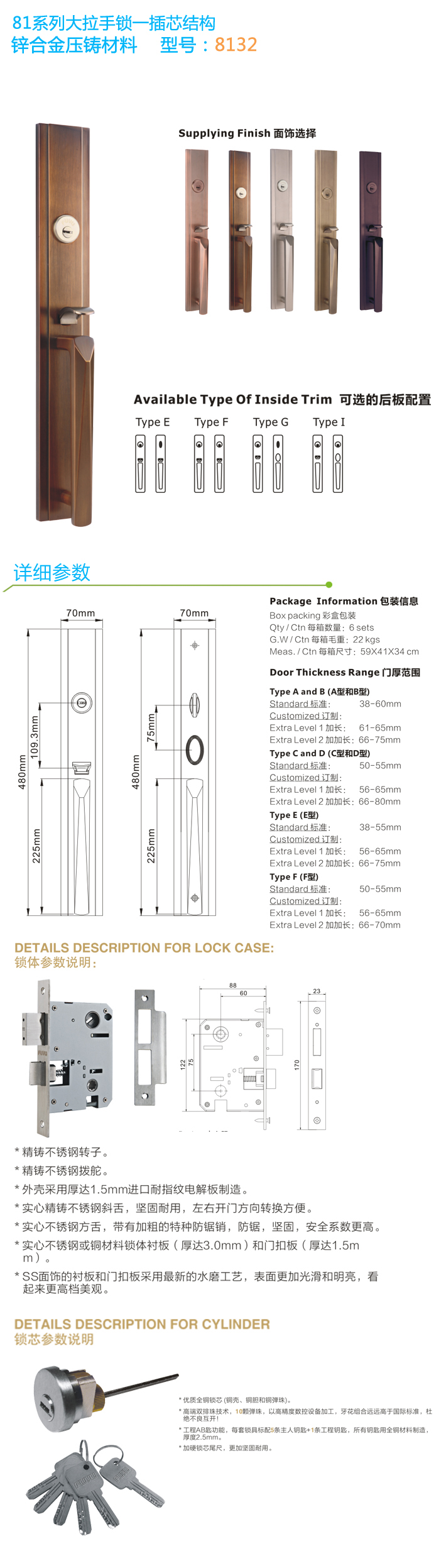 * 鎖體采用精鑄不銹鋼斜舌、防鋸方舌、轉子和拔舵