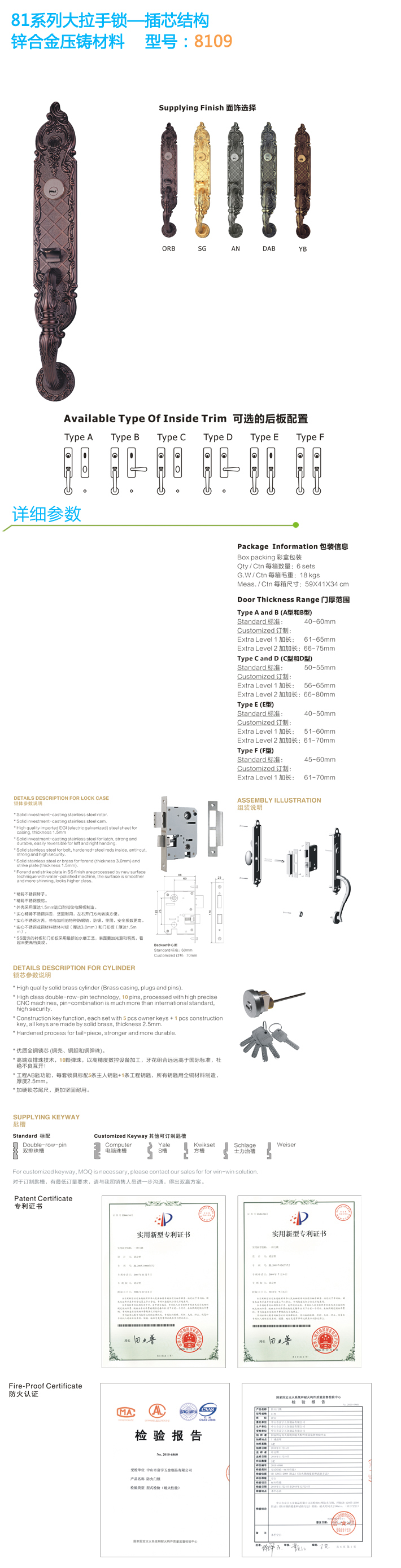 歐標大門鎖定制 8109