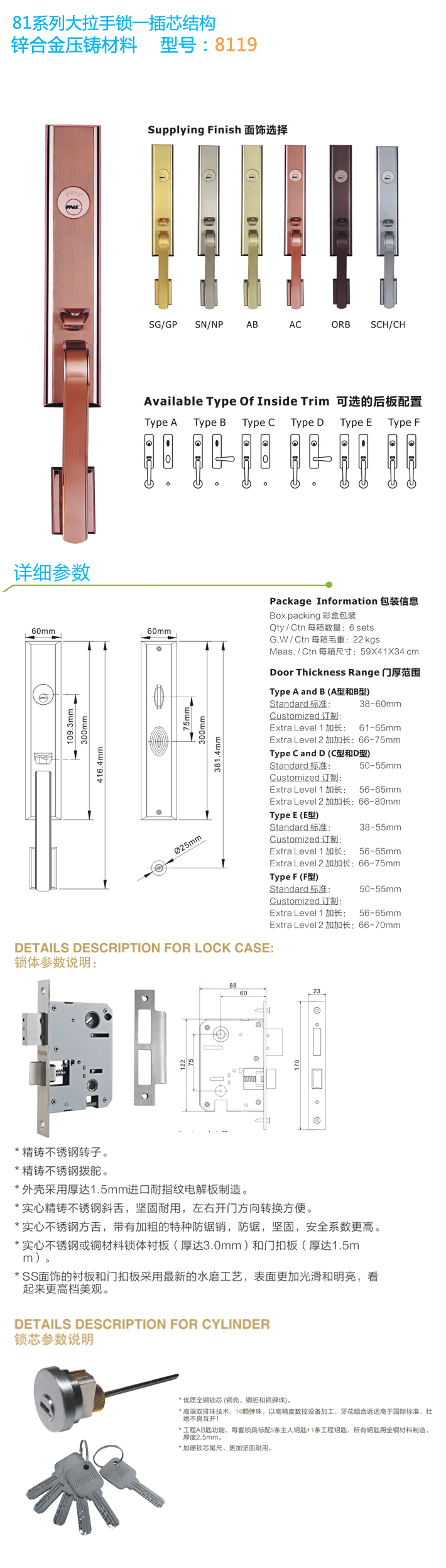 * 表示必填采購(gòu):歐標(biāo)鋅合金大把手鎖 8119