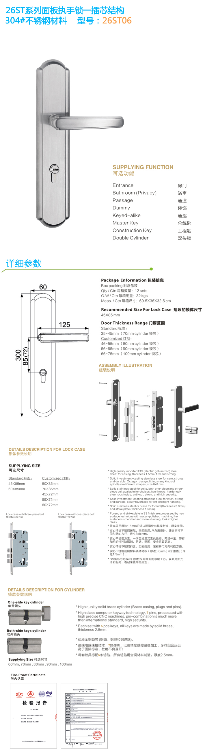 * 表示必填采購:歐標執手面板鎖 26ST06