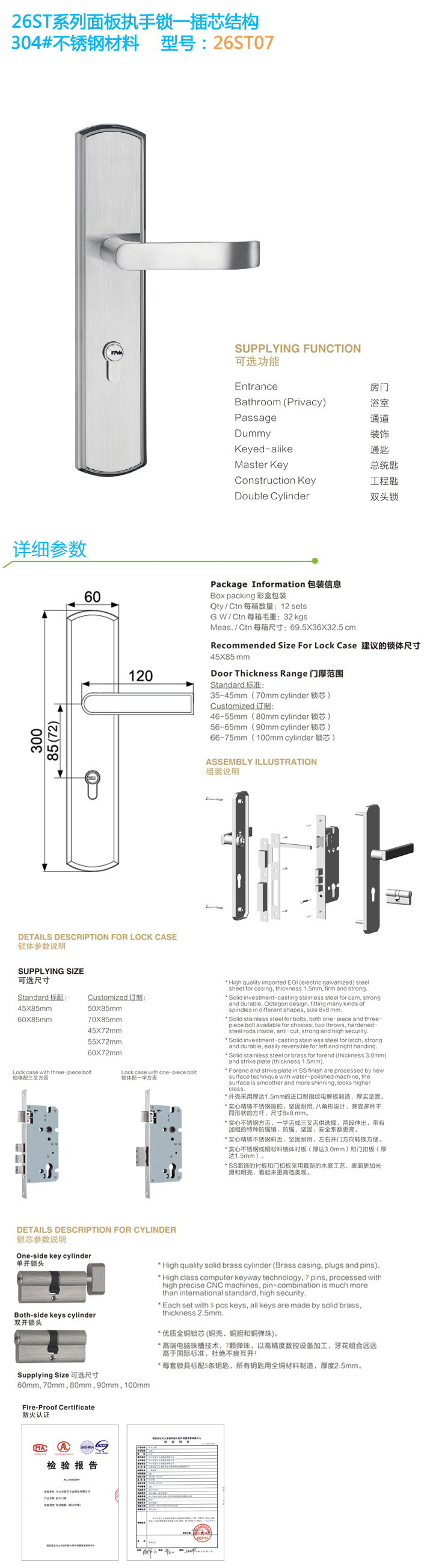 * 表示必填采購:歐標執手面板鎖 26ST07