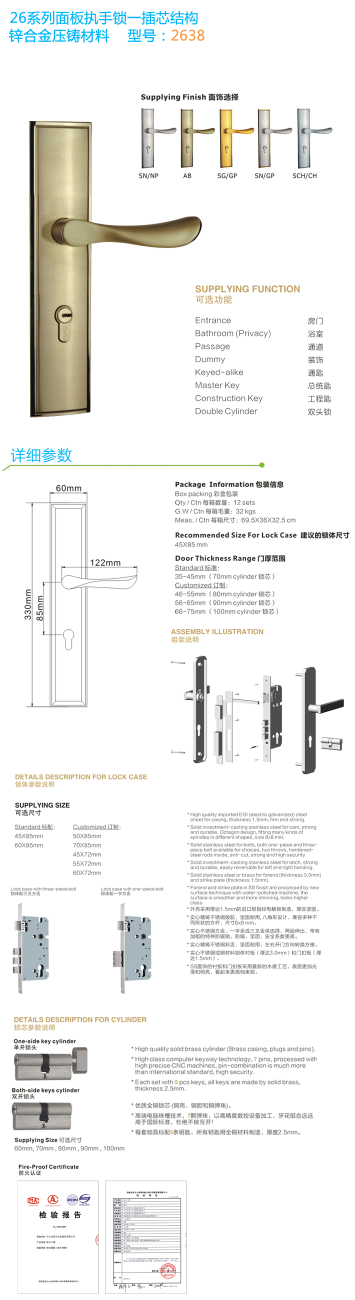 * 優質全銅鎖芯,標配5條全銅鑰匙