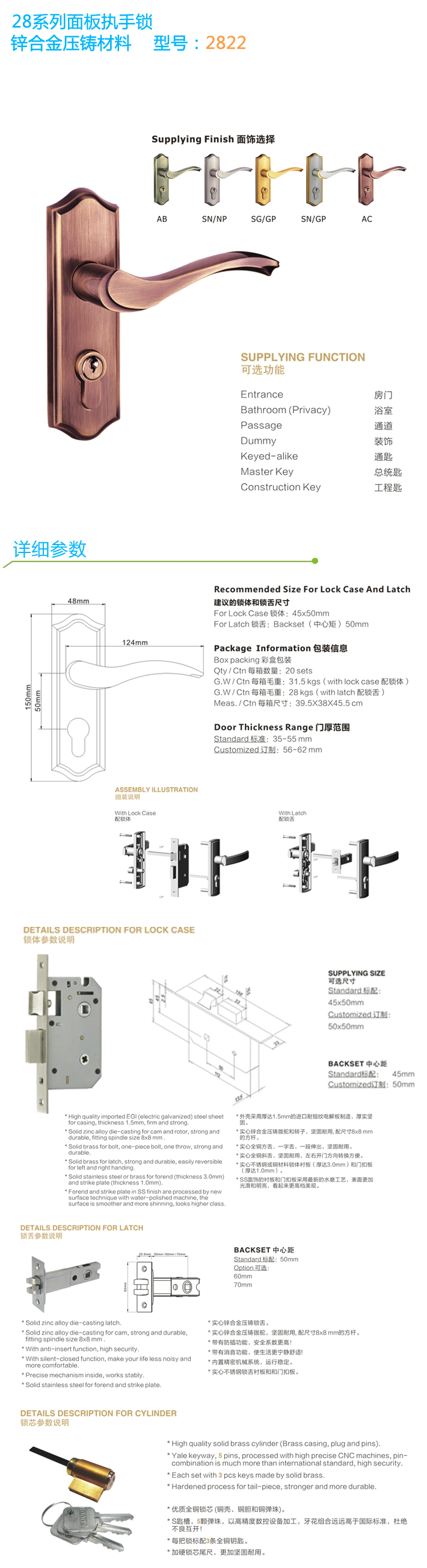 * 優(yōu)質(zhì)全銅鎖芯,標(biāo)配3條全銅鑰匙