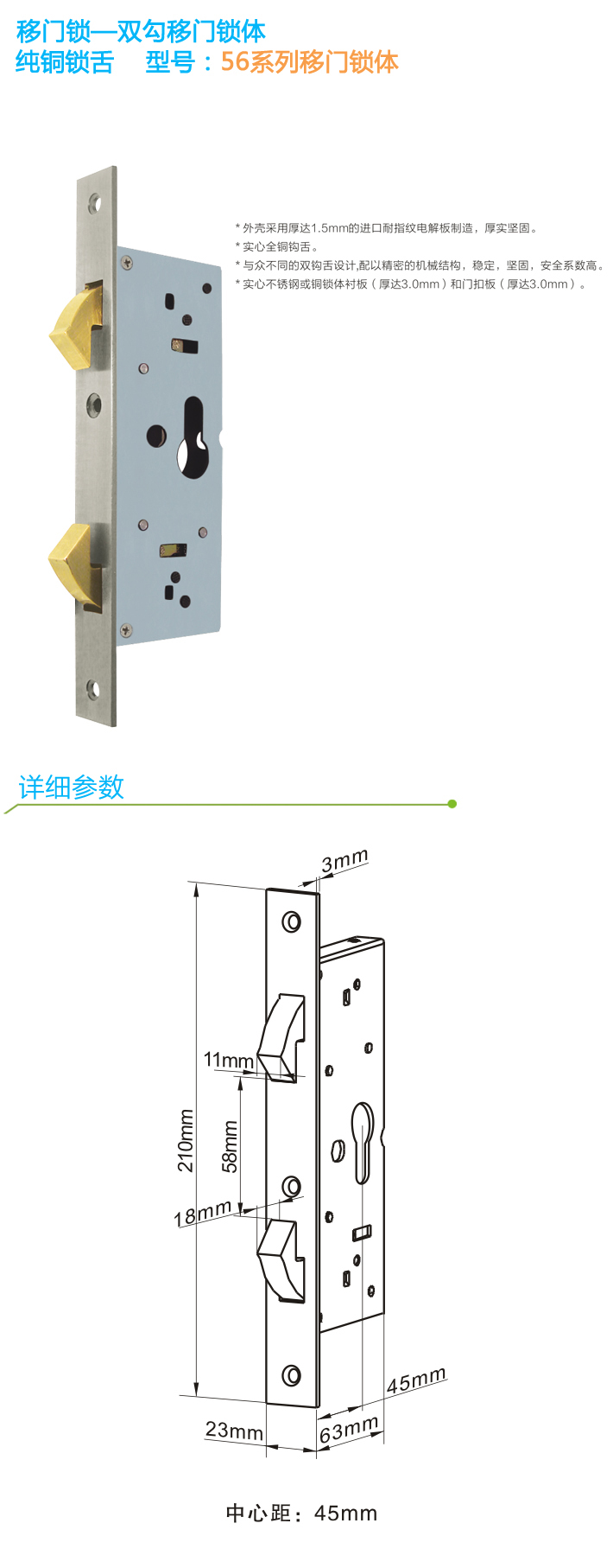 * 表示必填采購:移門鎖雙鉤豪華鎖體