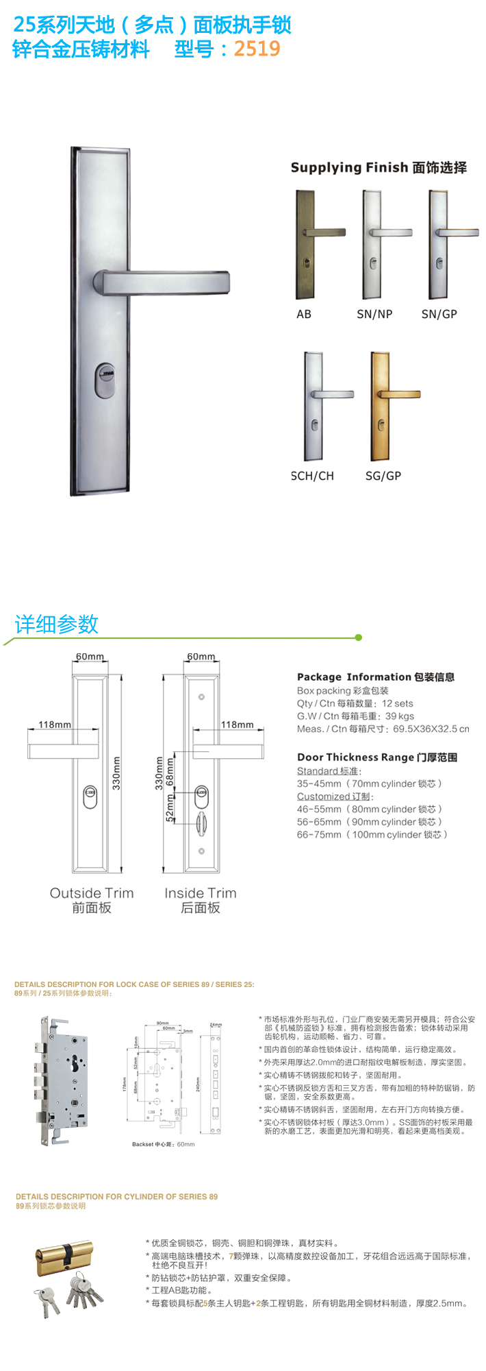 * 適用于各種安防盜門、金屬門和木門